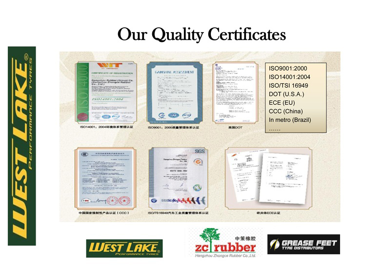 Over 20,000 employees including six international experts and hundreds of R&D staff present to customers in over 150 countries various products with stable and sustained supply. Strict quality control system is complied with ISO 9000 requirements, and tyre quality meets DOT and ECE standards. Advanced inspection equipments are invested to guarantee that any tyres delivered to customers are of best quality. Further ZC Rubber keeps on improving quality with the tyre performance results and the technical know-how obtained in the cooperation with top 10 international tyre manufacturers such as Goodyear, Kumho and Yokohama.